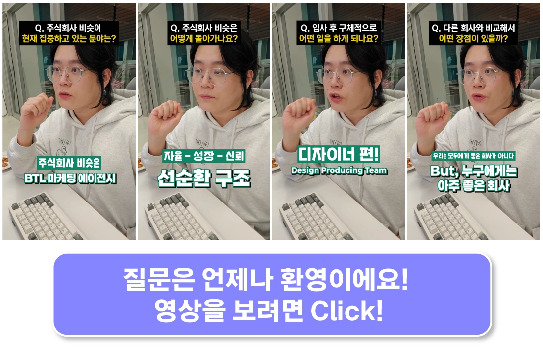 회사에서 중요하게 생각하는 것들 짧고, 빠르게 보실 수 있도록 60초 릴스를 준비했어요