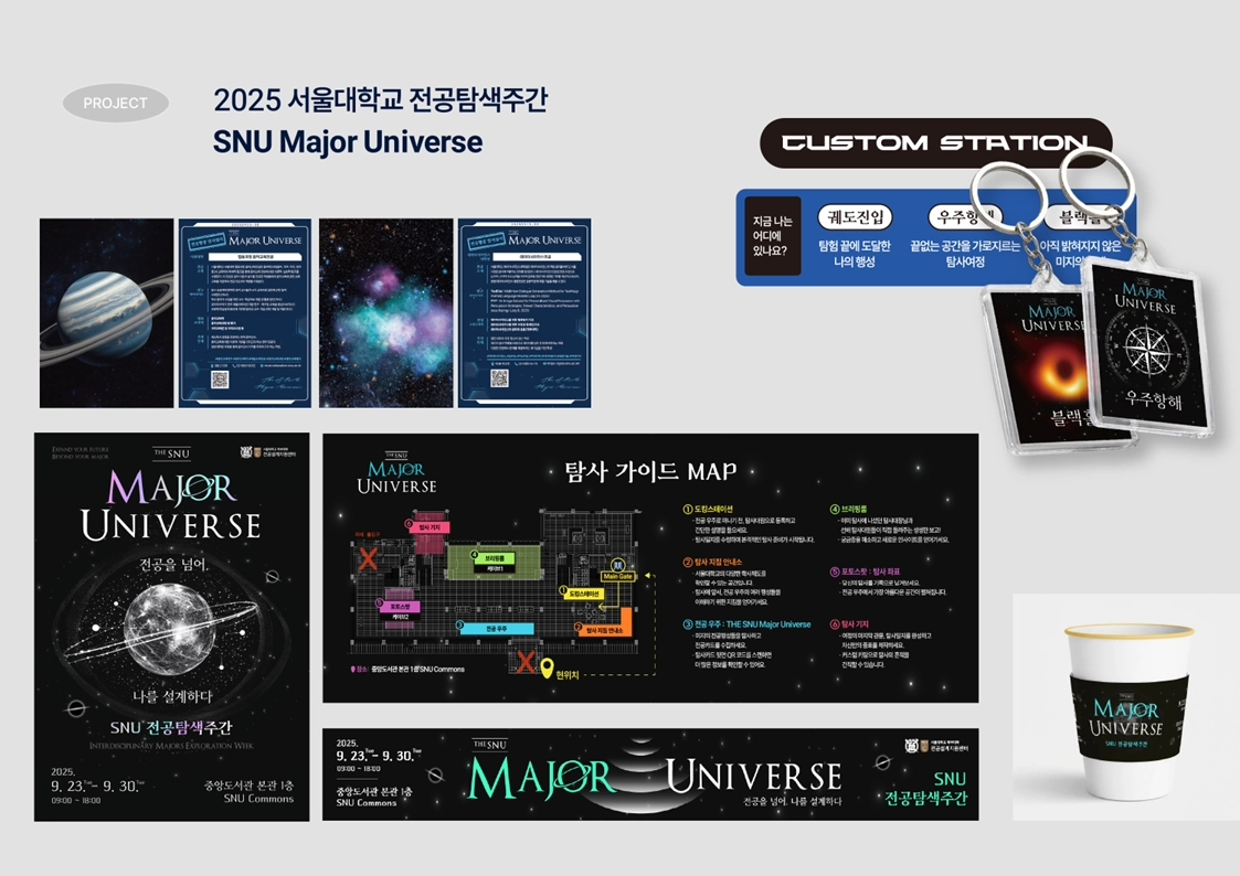 특히 서울대학교 중앙도서관 1층의 20m 대형 미디어월이라는 상징적 공간을 활용해야 했던 이번 프로젝트는, 단순한 박람회를 넘어 공간 전체를 하나의 메시지로 설계해야 한다는 과제가 있었습니다.