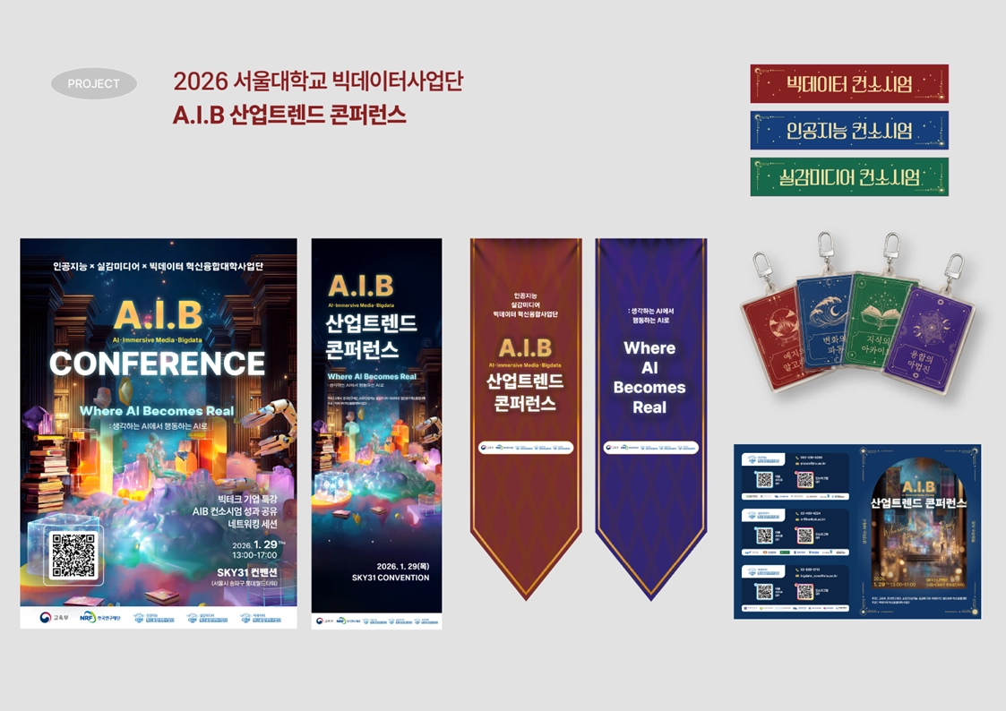 또한 3개 컨소시엄의 성과물을 동일한 톤앤매너로 재구성하여, 서로 다른 연구 결과가 하나의 행사 브랜드 안에서 자연스럽게 연결되도록 디자인했습니다.